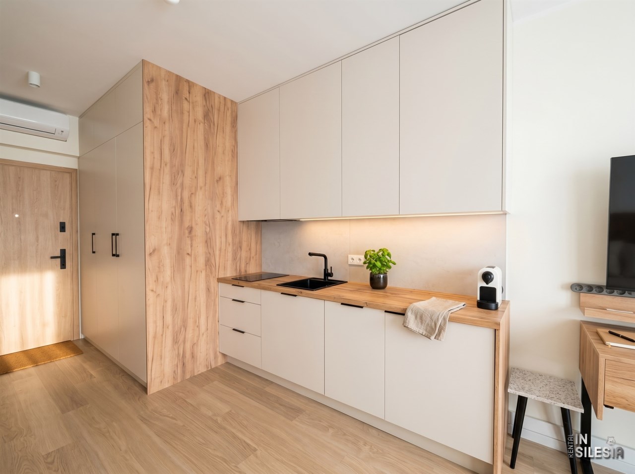 Na sprzedaż — kawalerka z aneksem kuchennym, 27 m², 16. piętro w nowoczesnym wieżowcu z 2023 roku przy ul. Zabrskiej 15 w Katowicach.